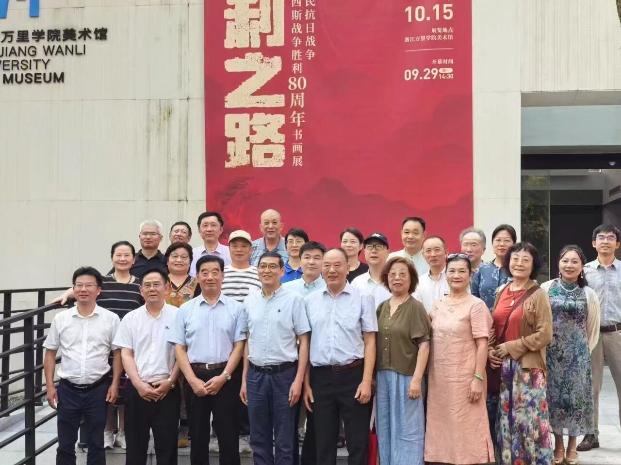 9月29日,由浙江省委宣传部指导,浙江省新四军历史研究会、浙江万里学院共同主办的“胜利之路”——纪念中国人民抗日战争暨世界反法西斯战争胜利80周年书画作品展在浙江万里学院隆重开幕。浙江省新四军历史研究会常务副会长宋光宝、副会长兼书画院长骆振龙,浙江万里教育集团董事总裁林良富、党委书记王伟忠,宁波市新四军历史研究会会长王建社等领导出席,省新四军历史研究会、浙江万里学院有关部门领导,以及浙江万里学院师生代表等100余人参加开幕式。
