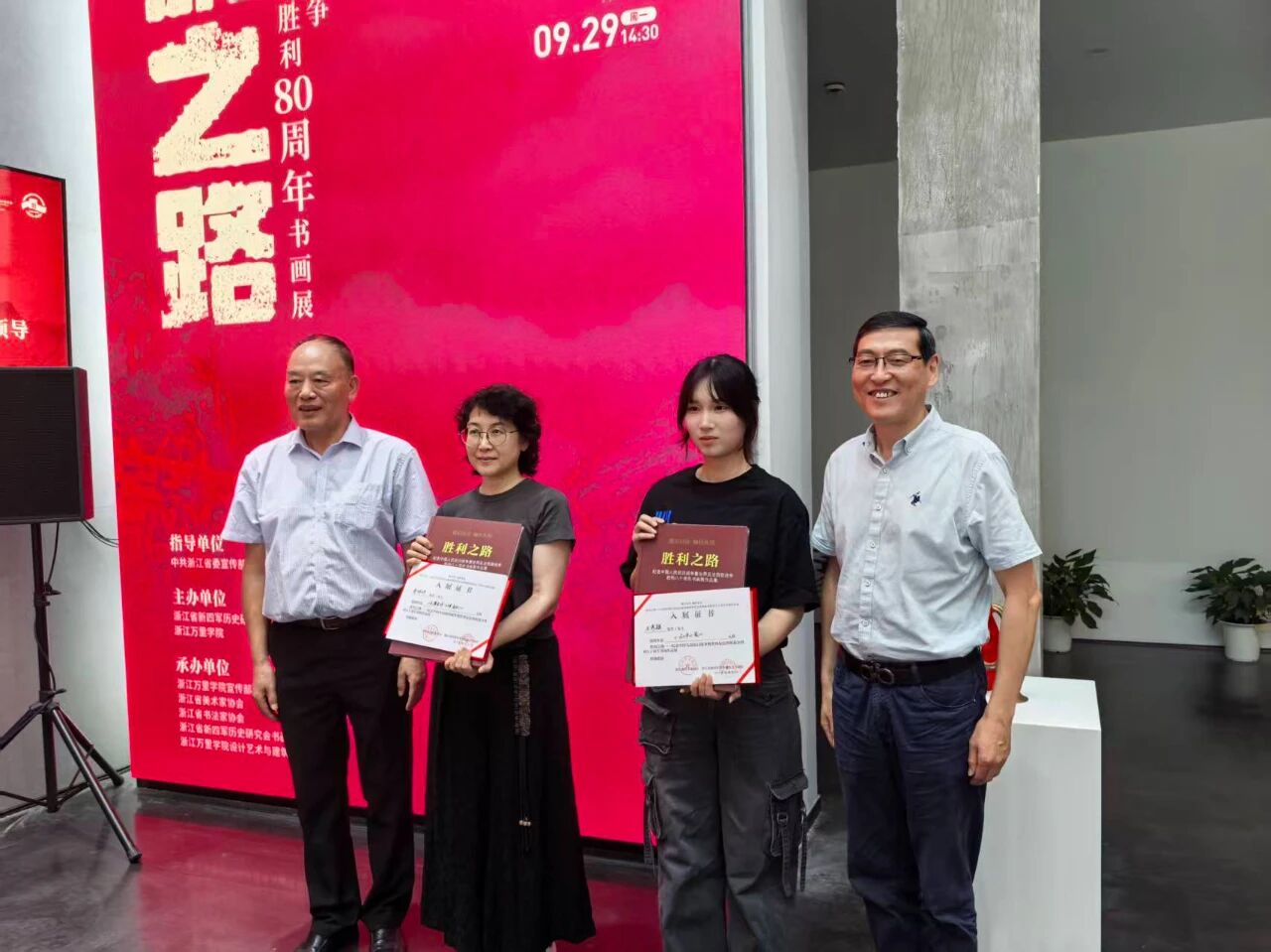 开幕式上,浙江省新四军历史研究会和浙江万里学院领导林良富、骆振龙为参展师生代表颁发证书。