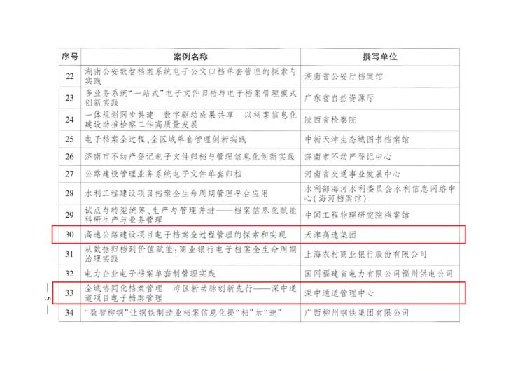 近日,国家档案局办公室公布档案信息化创新案例评选结果,微柏软件的用户单位天津高速集团、深中通道管理中心及葛洲坝集团交通投资有限公司凭借其卓越的档案信息化实践成果,成功入选本次国家级创新案例名单!