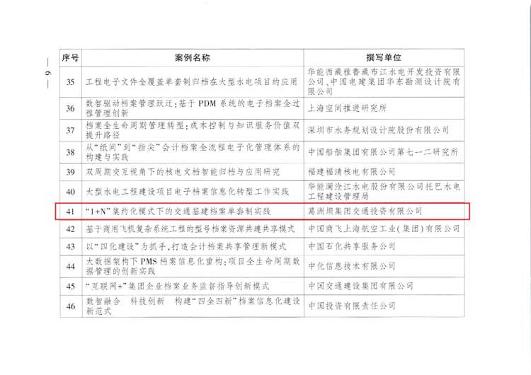 《“1+N”集约化模式下的交通基建档案单套制实践》葛洲坝集团交通投资有限公司
