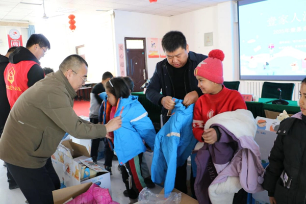 各发放点的场景同样暖心。孩子们排着整齐的队伍,小脸上满是期待,眼神里藏着对新礼物的好奇。当陈晓军会长等领导和爱心企业家们把沉甸甸的温暖包递到他们手里时,孩子们的笑容瞬间绽放。有的小心翼翼地摸了摸崭新的棉衣面料,有的试着背上书包转了一圈,还有的迫不及待翻看绘本,清脆的笑声在每个发放点此起彼伏。