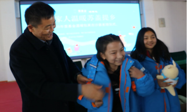 “谢谢叔叔阿姨!棉衣穿上特别暖和,书包和文具我都很喜欢,以后我一定好好学习,不辜负大家的关心!”一名受助小朋友捧着温暖包,认真地表达着感谢。
