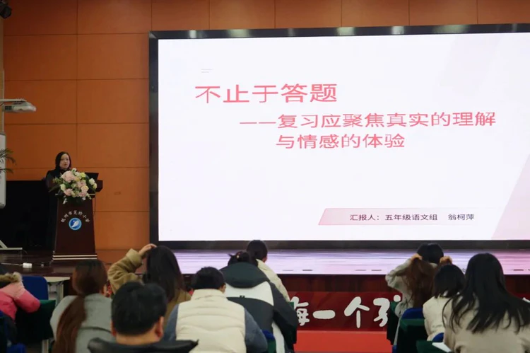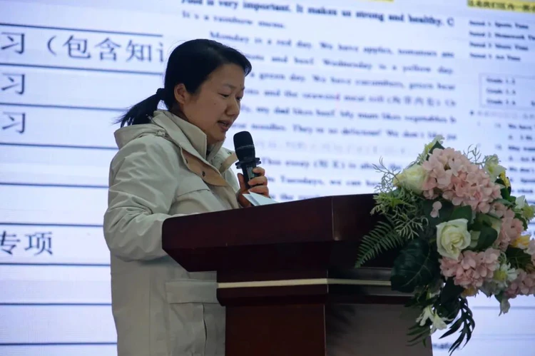 英语教研组周鸿老师聚焦五年级英语命题中的读写素养要求,从日常教学、作业设计、复习规划及教学难点突破四个方面展开质量分析汇报。她强调,教学中要注重核心素养各维度的相互渗透:日常教学需强化集体备课,聚焦英语知识的实际应用;作业设计要坚持素养导向、学科融合,设计主题实践作业,编写“每周一练”专项习题;复习阶段可创设生活化情景,以闯关形式开展专题复习,提升学生参与度;同时积极学习新技术,借助AI设计趣味游戏,精准突破教学难点,强化学生语言运用能力。